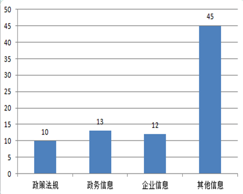 (一)加大了主動公開政府信息工作力度。2014年,我鎮(zhèn)通過“中國·文登網”及澤庫鎮(zhèn)政府網站兩個信息平臺,強力打造澤庫鎮(zhèn)政府信息公開平臺,強化政府信息公開平臺建設,提高政府信息公開力度,在過去的一年里,主動公開政府信息80條。從內容分類看,政策法規(guī)10條,政務信息13條,企業(yè)信息12條,其他信息45條。