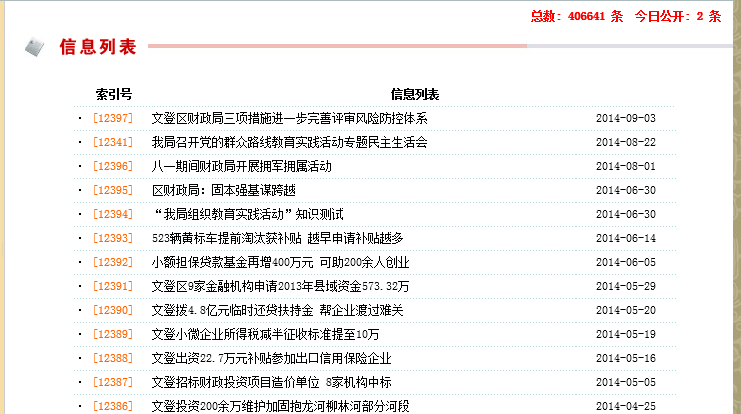 2014年,威海市文登區(qū)財(cái)政局認(rèn)真貫徹落實(shí)《條例》和《辦法》,依托互聯(lián)網(wǎng)和業(yè)務(wù)辦事大廳,建立和完善了信息發(fā)布與政府信息公開(kāi)一體的服務(wù)平臺(tái),依法、按時(shí)公開(kāi)各種政府信息,主動(dòng)公開(kāi)與群眾咨詢(xún)公開(kāi)相結(jié)合,不斷提高財(cái)政局機(jī)關(guān)行政透明度和辦事效率,全面接受社會(huì)監(jiān)督。全年,通過(guò)“中國(guó)·文登”網(wǎng)政府信息公開(kāi)專(zhuān)欄和文登財(cái)政信息網(wǎng)以及新聞媒體、公告欄、電子顯示屏等多種形式,發(fā)布各類(lèi)法律法規(guī)、辦事指南等服務(wù)信息450多條,及時(shí)、全面、有效地主動(dòng)公開(kāi)政府信息,積極受理和回復(fù)政府信息公開(kāi)申請(qǐng),為公眾提供了比較好的政府信息公開(kāi)服務(wù)。