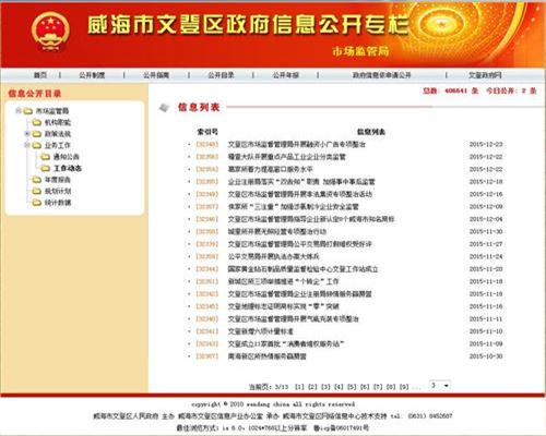 2015年,威海市文登區(qū)市場(chǎng)監(jiān)督管理局認(rèn)真貫徹落實(shí)《條例》和《辦法》,政府信息公開(kāi)工作穩(wěn)步推進(jìn)。在政府信息公開(kāi)渠道拓展上,依托互聯(lián)網(wǎng),建立和完善了信息發(fā)布與政府信息公開(kāi)一體的服務(wù)平臺(tái);在政府信息公開(kāi)方面,主動(dòng)公開(kāi)與群眾咨詢(xún)公開(kāi)相結(jié)合,不斷提高市場(chǎng)監(jiān)督管理透明度和辦事效率;在制度建設(shè)上,繼續(xù)完善各種制度規(guī)章,依法、按時(shí)公開(kāi)各種政府信息,促進(jìn)政府機(jī)關(guān)依法行政,全面接受社會(huì)監(jiān)督。全年,通過(guò)威海市文登區(qū)政府信息公開(kāi)網(wǎng)和文登紅盾信息網(wǎng)等網(wǎng)站,發(fā)布各類(lèi)法律法規(guī)、業(yè)務(wù)工作、辦事指南等服務(wù)信息238條,及時(shí)、全面、有效地主動(dòng)公開(kāi)政府信息,積極受理和回復(fù)政府信息公開(kāi)申請(qǐng),為公眾提供了比較好的政府信息公開(kāi)服務(wù)。