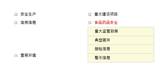 作為食品藥品安全監(jiān)管工作的牽頭單位,我局在區(qū)政府門戶網(wǎng)站上設(shè)立了:重大監(jiān)管政策、典型案件、抽檢信息、警示信息等欄目(見圖二)。并且在我局門戶網(wǎng)站上相應(yīng)欄目及時(shí)更新相關(guān)的信息及內(nèi)容。完成了所有涉及食品藥品重點(diǎn)領(lǐng)域的信息公開工作。