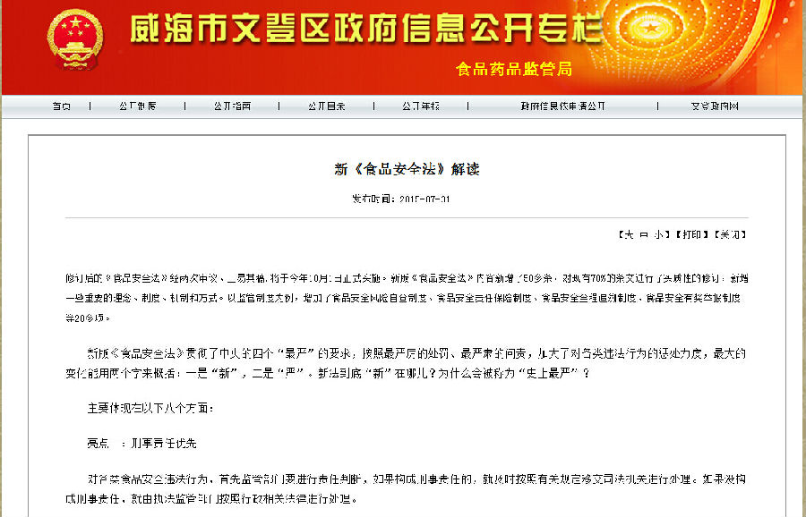 在政府信息公開過(guò)程中,威海市文登區(qū)食品藥品監(jiān)督管理局始終堅(jiān)持為民、便民、利民的原則,對(duì)印刷、郵寄等費(fèi)用都予以免費(fèi)。