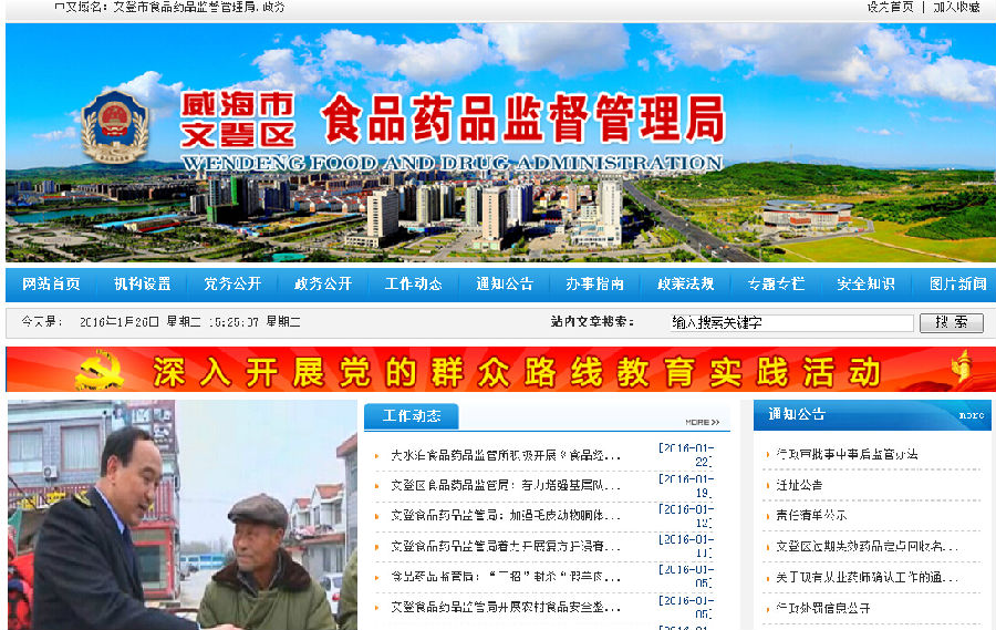 (二)強(qiáng)化了政府信息公開平臺(tái)建設(shè)。在依托“威?!の牡恰边@個(gè)平臺(tái)開展信息公開工作的同時(shí),繼續(xù)完善“威海市文登區(qū)食品藥品監(jiān)督管理局網(wǎng)站”的建設(shè),加大公開力度,為群眾了解食品藥品監(jiān)管信息提供方便(見圖五)。