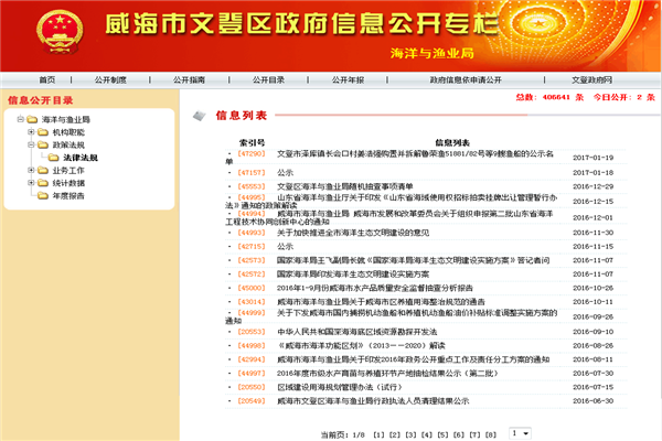 (二)強(qiáng)化了政府信息公開平臺建設(shè)。依托“中國·文登”這個平臺開展信息公開工作,加大公開力度,為群眾了解海洋與漁業(yè)信息提供方便。