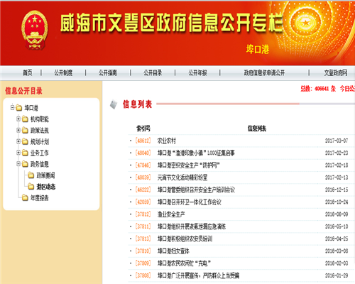 (一)加大了主動公開政府信息工作力度。2016年,埠口港共主動公開政府信息72余條。