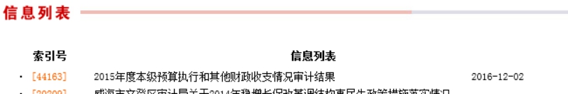 (二)堅(jiān)持實(shí)施審計(jì)結(jié)果公告制度。根據(jù)審計(jì)署發(fā)布《審計(jì)機(jī)關(guān)公布審計(jì)結(jié)果準(zhǔn)則》和《審計(jì)署審計(jì)結(jié)果公告試行辦法》文件規(guī)定,2016年通過“中國(guó)·文登”政府網(wǎng)站信息公開平臺(tái)和文登區(qū)審計(jì)局網(wǎng)站等渠道,向社會(huì)發(fā)布政府預(yù)算執(zhí)行審計(jì)結(jié)果公告1篇,為公眾了解年度預(yù)算執(zhí)行情況提供了比較好的政府信息公開服務(wù)。