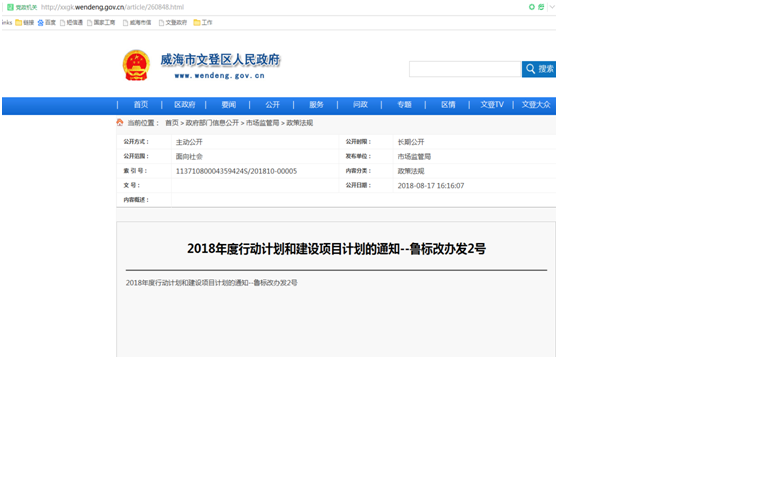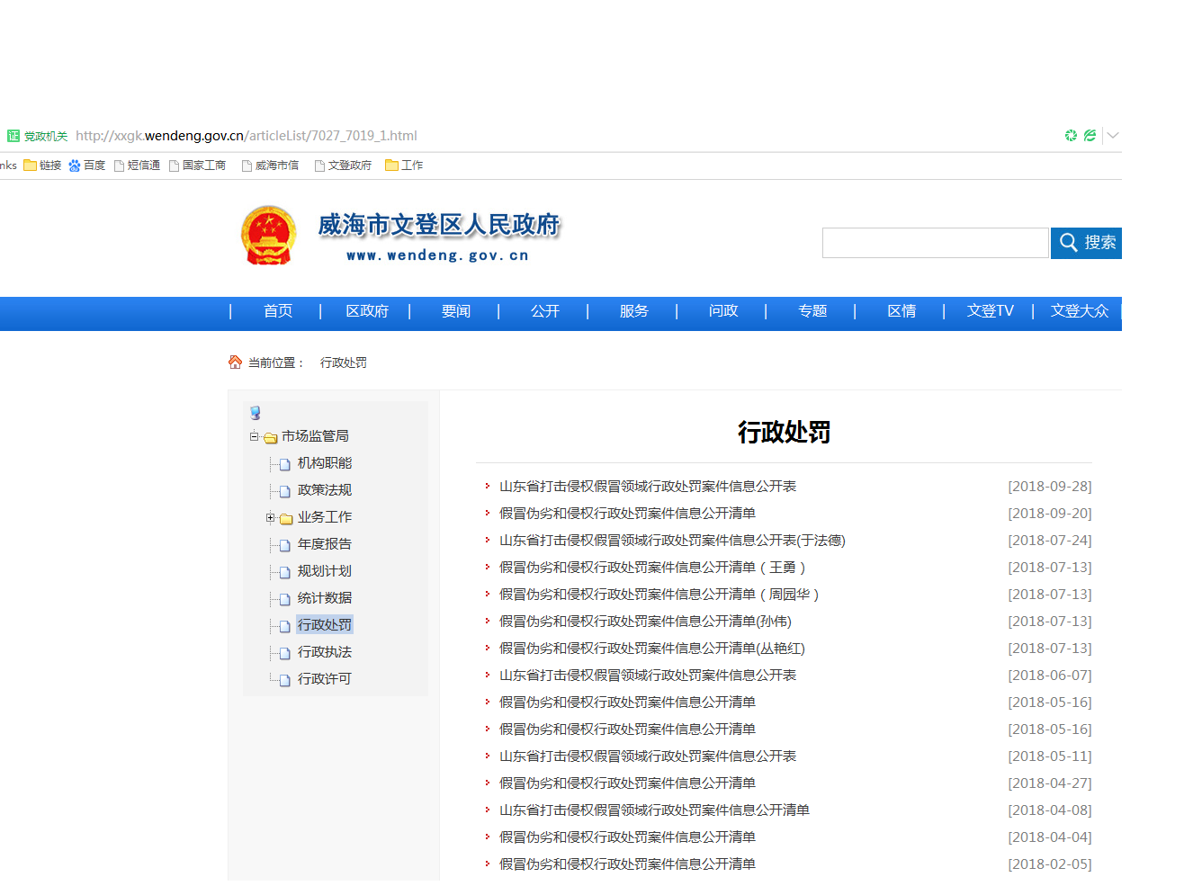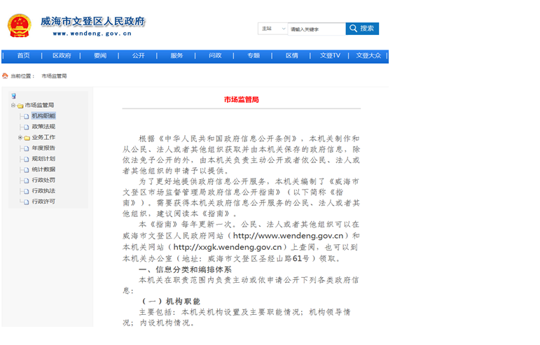 (二)加大主動公開政府信息工作力度。2018年,威海市文登區(qū)市場監(jiān)督管理局在“威海·文登”網(wǎng)上主動公開、更新政府信息373條。從內(nèi)容分類看,業(yè)務(wù)工作275條,統(tǒng)計數(shù)據(jù)1條,其他信息97條;從公開形式上看均為網(wǎng)上公開。
