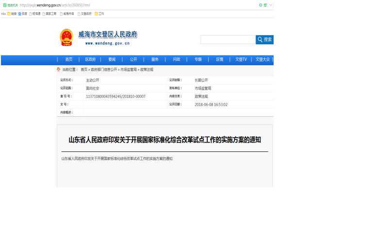 (三)圍繞新舊動能轉(zhuǎn)換、經(jīng)略海洋、鄉(xiāng)村振興做好公開。通過政府信息公開平臺及時公開省政府《關(guān)于開展國家標(biāo)準(zhǔn)化綜合改革試點工作的實施方案》,同時根據(jù)2018“山東標(biāo)準(zhǔn)”建設(shè)的要求,重點圍繞新舊動能轉(zhuǎn)換、鄉(xiāng)村振興、海洋強區(qū)、公共服務(wù)保障工程,著眼于加快形成推動高質(zhì)量發(fā)展的標(biāo)準(zhǔn)體系,以形成可復(fù)制、可推廣的經(jīng)驗為目標(biāo),積極打造各類標(biāo)準(zhǔn)化項目并依托政府信息公開平臺予以公示。