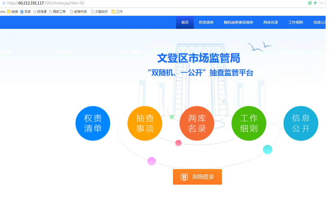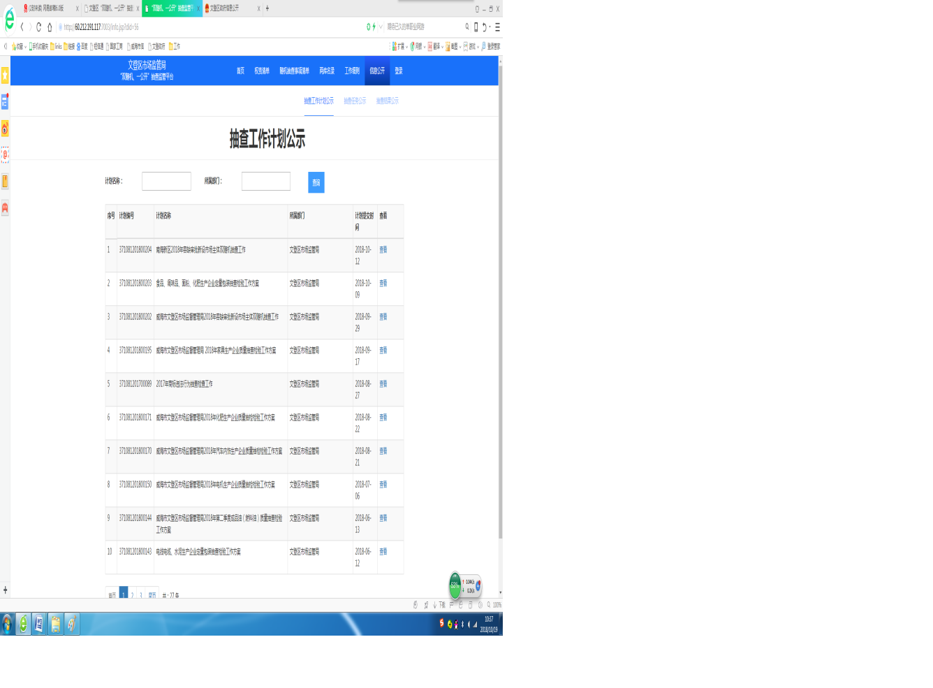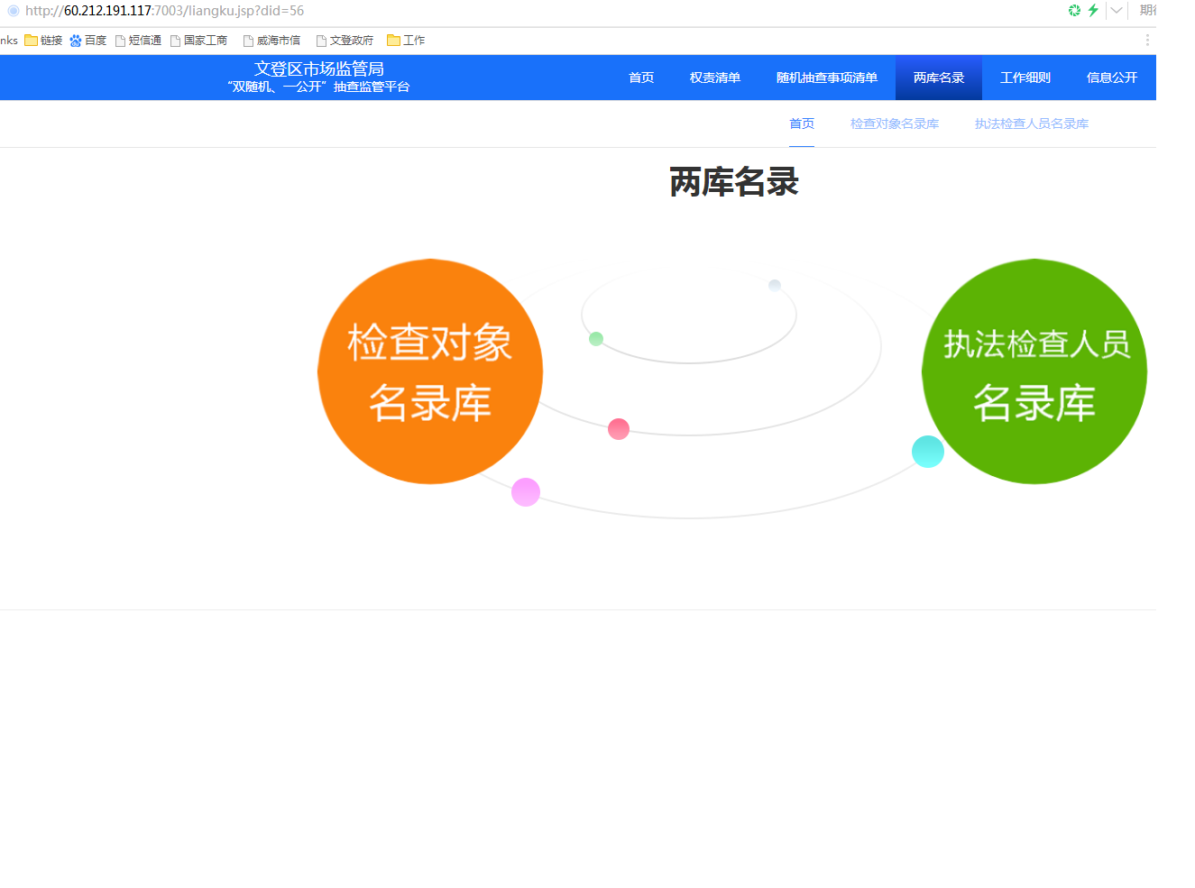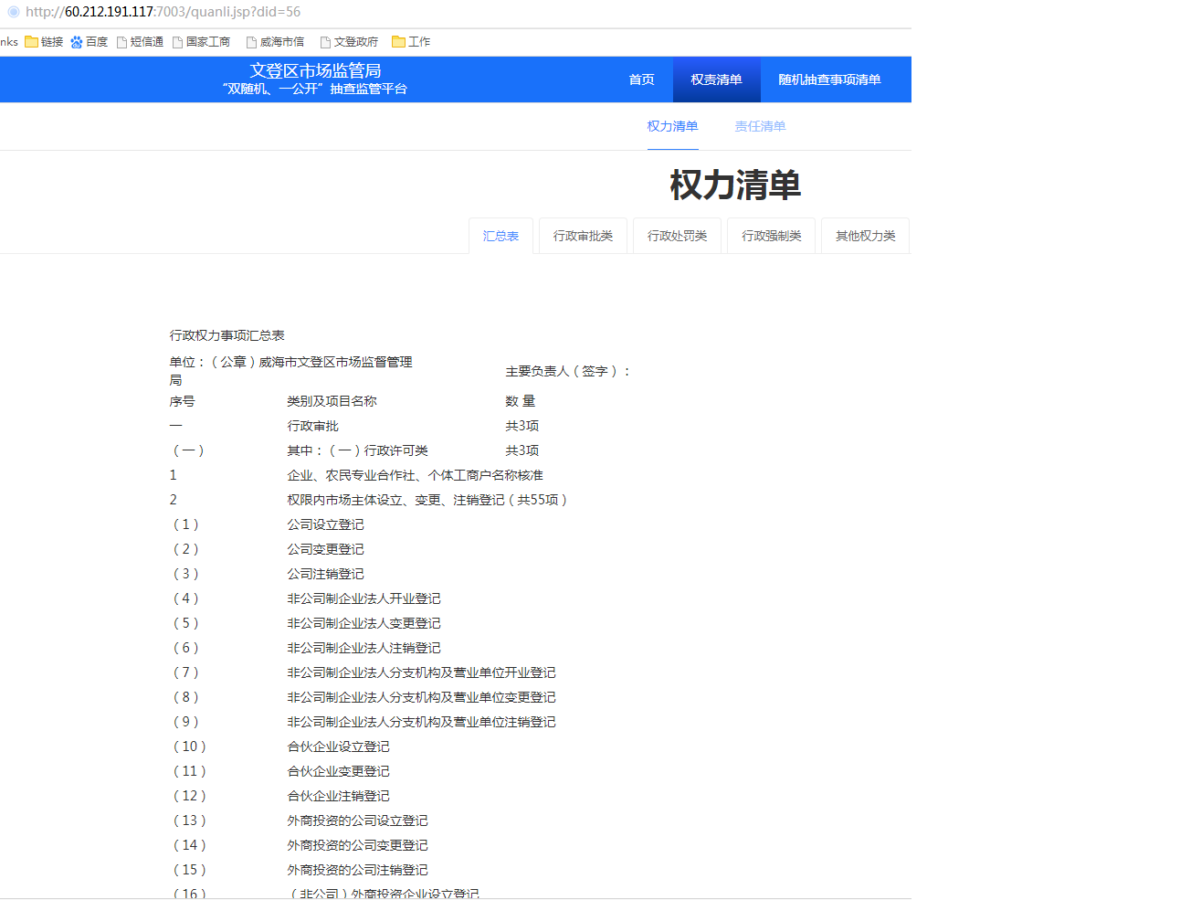 (五)聚焦“放管服”改革做好公開。一是“雙隨機、一公開”監(jiān)管工作。1、督導(dǎo)成員單位高效使用監(jiān)管平臺。全區(qū)37家成員單位結(jié)合權(quán)責(zé)清單確定316項隨機抽查事項,啟用威海市統(tǒng)一的“雙隨機、一公開”監(jiān)管平臺,完成了“一單兩庫一細(xì)則”的數(shù)據(jù)錄入,同時將相關(guān)數(shù)據(jù)在政府信息公開平臺進行公示,實現(xiàn)了行政執(zhí)法事項全覆蓋,改變了以往隨意執(zhí)法的現(xiàn)象,有效規(guī)避了權(quán)力尋租,促進了執(zhí)法監(jiān)管公平公正公開。