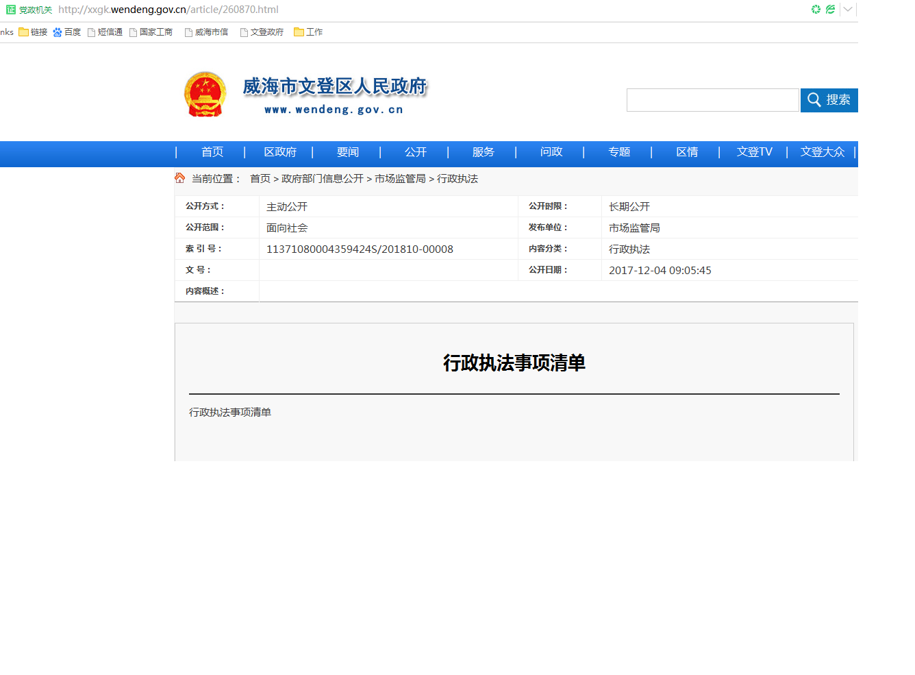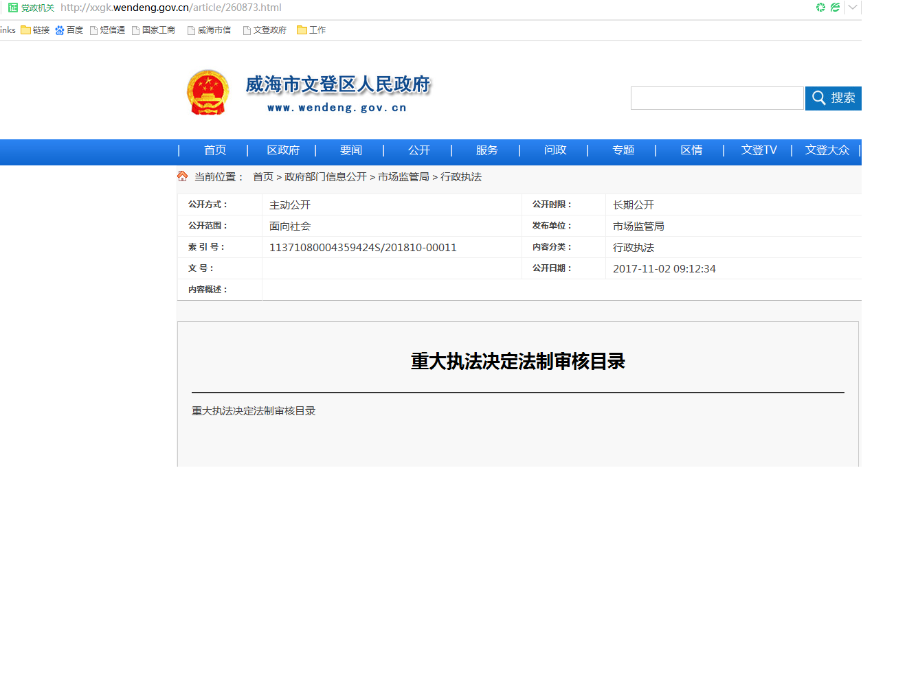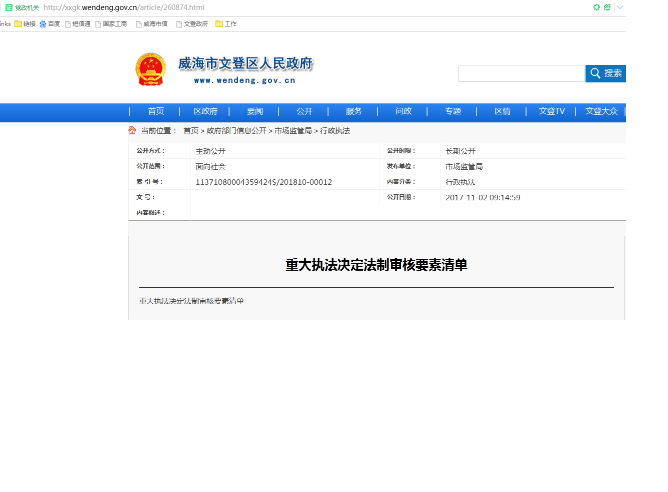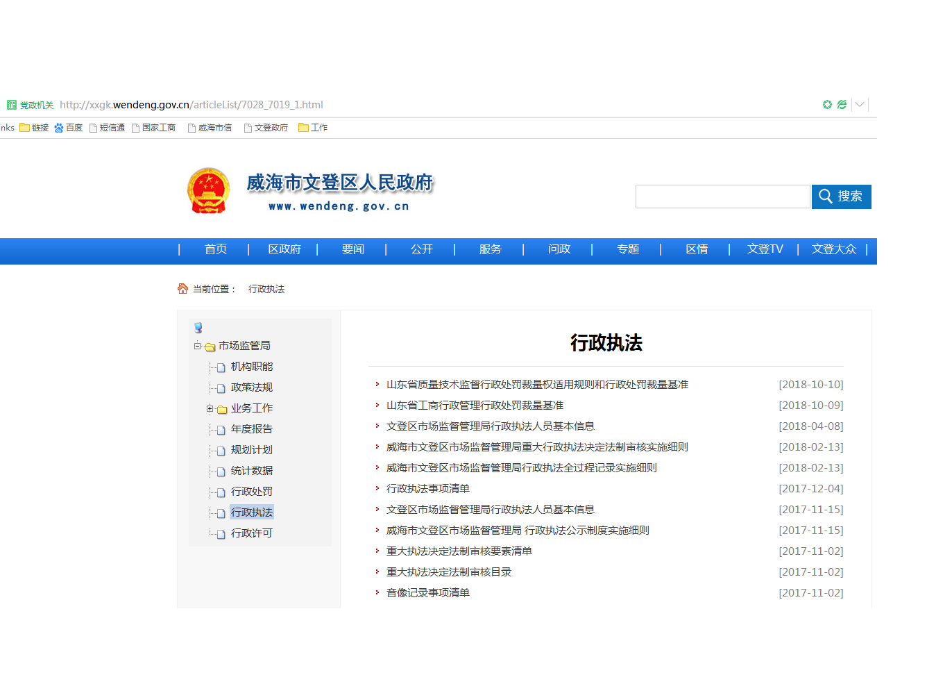 2、貫徹落實行政執(zhí)法制度。制定了《威海市文登區(qū)市場監(jiān)督管理局行政執(zhí)法信息公示制度實施細(xì)則》、《執(zhí)法全過程記錄實施細(xì)則》、《重大執(zhí)法決定法制審核實施細(xì)則》、《重大執(zhí)法決定法制審核目錄》、《重大執(zhí)法決定法制審核要素清單》、《重大執(zhí)法決定法制審核流程圖》等相關(guān)制度文件,通過政務(wù)網(wǎng)站公開,并嚴(yán)格遵照執(zhí)行。