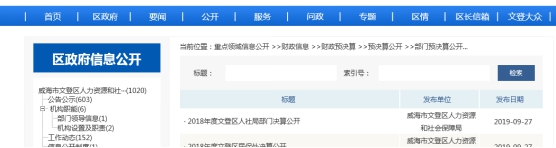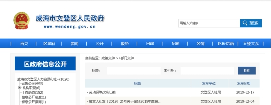 威海市文登區(qū)人力資源和社會保障局2019年度政府信息公開年度報告.docx