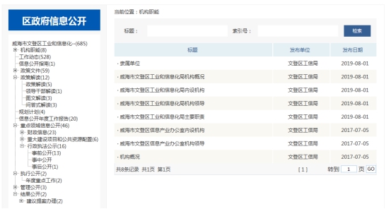 2019年,威海市文登區(qū)工業(yè)和信息化局通過政府門戶網(wǎng)站,及時主動地公示政府信息,密切了和群眾的關系。但公示內(nèi)容仍缺乏廣度、深度,公示形式依然單一。