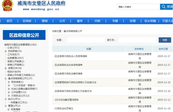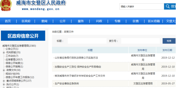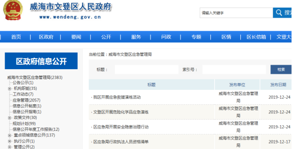 2019年,文登區(qū)應急管理局未收到政府信息公開申請。