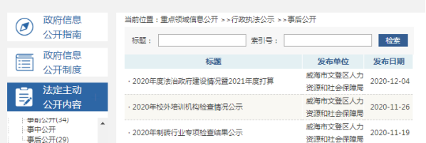 2020年,威海市文登區(qū)人力資源和社會保障局認(rèn)真貫徹落實(shí)《條例》《辦法》和區(qū)委、區(qū)政府統(tǒng)一部署,不斷健全完善政務(wù)信息公開工作制度,扎實(shí)做好政務(wù)信息公開工作,切實(shí)保障人民群眾的知情權(quán)、參與權(quán)、監(jiān)督權(quán)和表達(dá)權(quán)。