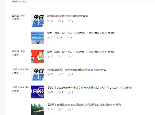 按照上級有關(guān)部門及區(qū)政府辦公室關(guān)于政府信息公開工作的相關(guān)要求,結(jié)合財政業(yè)務工作實際,先后增設(shè)了“財政資金直達基層”、“優(yōu)化營商環(huán)境-政府采購”等專欄專題,并按時保質(zhì)完成更新。召開政府開放日活動一次,著力化解百姓重點關(guān)注的痛點難點堵點。同時加大微信公眾號等政務新媒體的宣傳引導作用,對受眾面廣的重要通知及政策實現(xiàn)政務新媒體和政府網(wǎng)站同步更新,不斷提升政府信息公開的效能。2021年度,微信公眾號(文登財政)累計發(fā)布及轉(zhuǎn)發(fā)信息376篇。