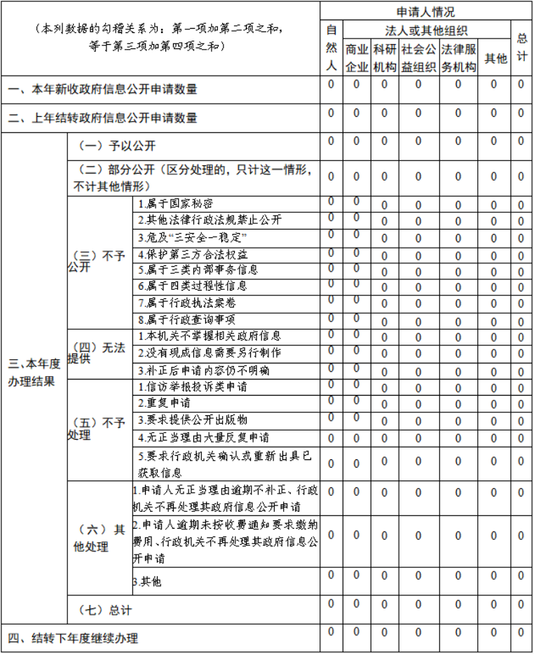 本報(bào)告主要由總體情況,行政機(jī)關(guān)主動(dòng)公開政府信息的情況,行政機(jī)關(guān)收到和處理政府信息公開申請(qǐng)的情況,因政府信息公開工作被申請(qǐng)行政復(fù)議、提起行政訴訟的情況,政府信息公開工作存在的主要問題及改進(jìn)情況,其他需要報(bào)告的事項(xiàng)六部分組成。
