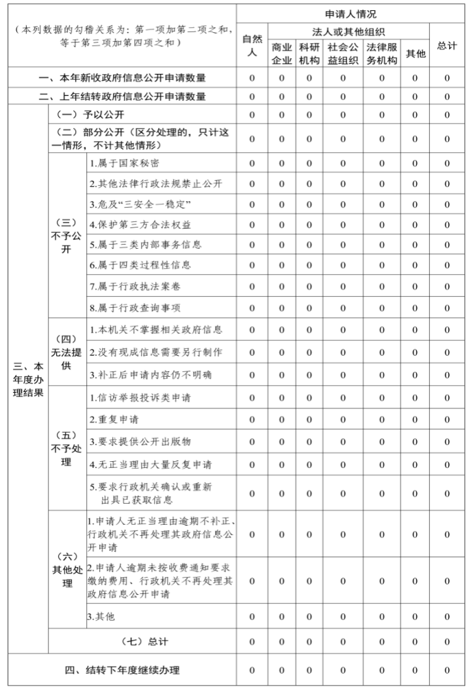 本報告由總體情況,主動公開政府信息情況,依申請公開辦理情況,政府信息公開行政復(fù)議、行政訴訟情況,存在的主要問題及改進情況,其他需要報告的事項共6部分組成。