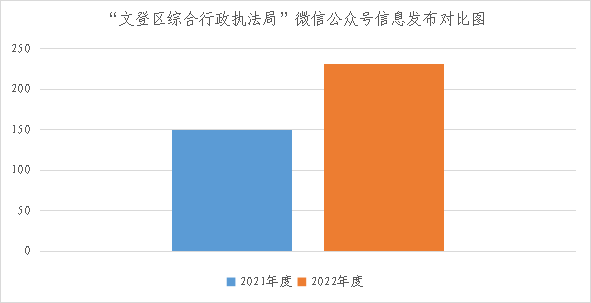 我局充分發(fā)揮區(qū)政府門戶網(wǎng)站第一平臺作用,以門戶網(wǎng)站為主要載體和公開平臺,圍繞群眾關(guān)心的熱點和難點問題,依法、主動、及時、準確公開政務(wù)信息,積極回應(yīng)社會關(guān)切。完善政務(wù)新媒體平臺建設(shè),依托“文登區(qū)綜合行政執(zhí)法局”微信公眾號及時對外發(fā)布最新工作動態(tài),設(shè)置便民服務(wù)、執(zhí)法先鋒、與法同行等版塊,第一時間回應(yīng)廣大群眾關(guān)心的熱點重點工作,全年共發(fā)布微信公眾號231篇。嚴格落實新聞發(fā)布制度,參加“我為群眾辦實事”新聞發(fā)布會和專題訪談共計2次,不斷提升我局宣傳工作成效。