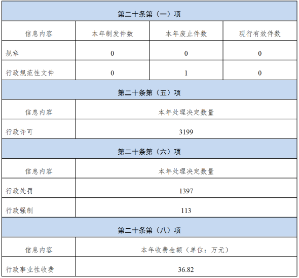 2022年,我局共主動公開政府信息67條。從內容分類看,公告公示6條,機構職能3條,工作動態(tài)31條,政策文件2條,政策解讀3條,治安管理工作信息1條,行政執(zhí)法公示信息6條,政務公開組織推進信息4條,執(zhí)行公開信息3條,管理公開信息3條,服務公開信息1條,結果公開信息4條其中人大代表建議辦理結果公開1條、政協(xié)委員提案辦理結果公開3條;從渠道上看,67條全部通過網(wǎng)上公開。