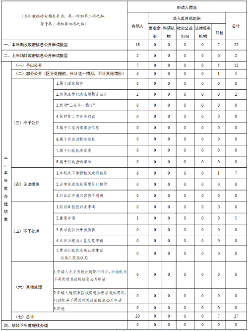 本年度我局收到25件信息公開申請,本年度答復(fù)27件,答復(fù)去年結(jié)轉(zhuǎn)件2件。暫無政府信息公開的收費(fèi)及減免情況。