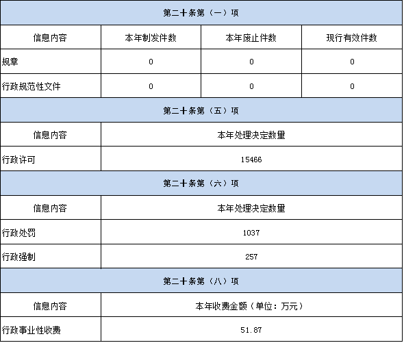 (一)主動(dòng)公開工作情況。2023年,我局堅(jiān)持“公開為常態(tài)、不公開為例外”原則,通過政府網(wǎng)站信息公開專欄共主動(dòng)公開政府信息90條。其中專題信息21條、政府信息公開69條。專題信息中,“雙隨機(jī)、一公開”監(jiān)管2條,行政執(zhí)法公示9條,年度重點(diǎn)工作3條,建議提案辦理4條(人大代表建議辦理結(jié)果公開2條、政協(xié)委員提案辦理1條、總體情況1條),政務(wù)公開組織管理3條。政府信息公開中,公告公示14條,機(jī)構(gòu)職能3條,工作動(dòng)態(tài)52條。本年度,我局無政策文件、政策解讀和回應(yīng)關(guān)切等公開信息。