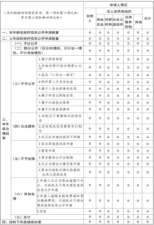 本報(bào)告內(nèi)容包括:總體情況、主動(dòng)公開(kāi)政府信息情況、收到和處理政府信息公開(kāi)申請(qǐng)情況、政府信息公開(kāi)行政復(fù)議及行政訴訟情況、存在的主要問(wèn)題及改進(jìn)情況、其他事項(xiàng),以及相關(guān)指標(biāo)統(tǒng)計(jì)附表等。報(bào)告中所列數(shù)據(jù)統(tǒng)計(jì)期限從2023年1月1日到12月31日止。報(bào)告電子版可從威海市文登區(qū)人民政府網(wǎng)站(網(wǎng)址:http://m.315shenghuo.com)政府信息公開(kāi)專欄查閱或下載。公眾如需進(jìn)一步咨詢了解相關(guān)信息,請(qǐng)與威海市文登區(qū)澤頭鎮(zhèn)人民政府辦公室聯(lián)系(地址:威海市文登區(qū)澤頭鎮(zhèn)交通路17號(hào),電話:0631-8861088)。