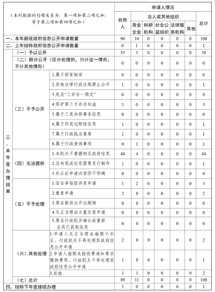 本報告內(nèi)容包括:總體情況、主動公開政府信息情況、收到和處理政府信息公開申請情況、政府信息公開行政復(fù)議及行政訴訟情況、存在的主要問題及改進情況、其他事項,以及相關(guān)指標統(tǒng)計附表等。報告中所列數(shù)據(jù)統(tǒng)計期限從2023年1月1日到12月31日止。報告電子版可從威海市人民政府門戶網(wǎng)站(https://www.weihai.gov.cn/)和威海市文登區(qū)人民政府門戶網(wǎng)站(http://m.315shenghuo.com)信息公開專欄查閱或下載。公眾如需進一步咨詢了解相關(guān)信息,請與威海市文登區(qū)人民政府辦公室聯(lián)系(地址:威海市文登區(qū)文山東路86號;電話:0631—8988877)。