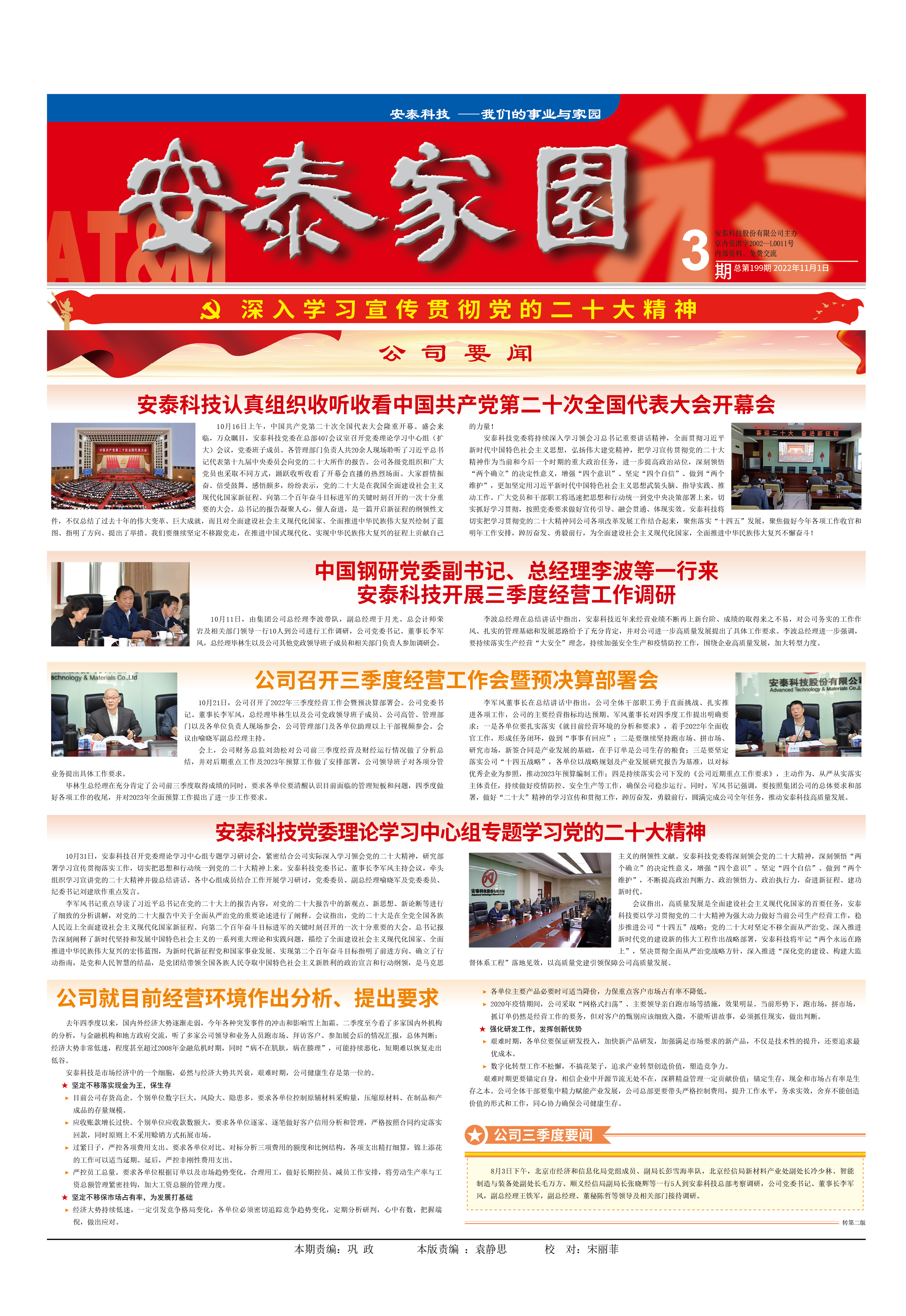 安泰科技黨委將持續(xù)深入學(xué)習(xí)領(lǐng)會(huì)習(xí)總書記重要講話精神,全面貫徹習(xí)近平新時(shí)代中國特色社會(huì)主義思想,弘揚(yáng)偉大建黨精神,把學(xué)習(xí)宣傳貫徹黨的二十大精神作為當(dāng)前和今后一個(gè)時(shí)期的重大政治任務(wù),進(jìn)一步提高政治站位,深刻領(lǐng)悟“兩個(gè)確立”的決定性意義,增強(qiáng)“四個(gè)意識(shí)”、堅(jiān)定“四個(gè)自信”、做到“兩個(gè)維護(hù)”,更加堅(jiān)定用習(xí)近平新時(shí)代中國特色社會(huì)主義思想武裝頭腦、指導(dǎo)實(shí)踐、推動(dòng)工作。廣大黨員和干部職工將迅速把思想和行動(dòng)統(tǒng)一到黨中央決策部署上來,切實(shí)抓好學(xué)習(xí)貫徹,按照黨委要求做好宣傳引導(dǎo)、融會(huì)貫通、體現(xiàn)實(shí)效。安泰科技將切實(shí)把學(xué)習(xí)貫徹黨的二十大精神同公司各項(xiàng)改革發(fā)展工作結(jié)合起來,聚焦落實(shí)“十四五”發(fā)展,聚焦做好今年各項(xiàng)工作收官和明年工作安排,踔厲奮發(fā)、勇毅前行,為全面建設(shè)社會(huì)主義現(xiàn)代化國家,全面推進(jìn)中華民族偉大復(fù)興不懈奮斗!