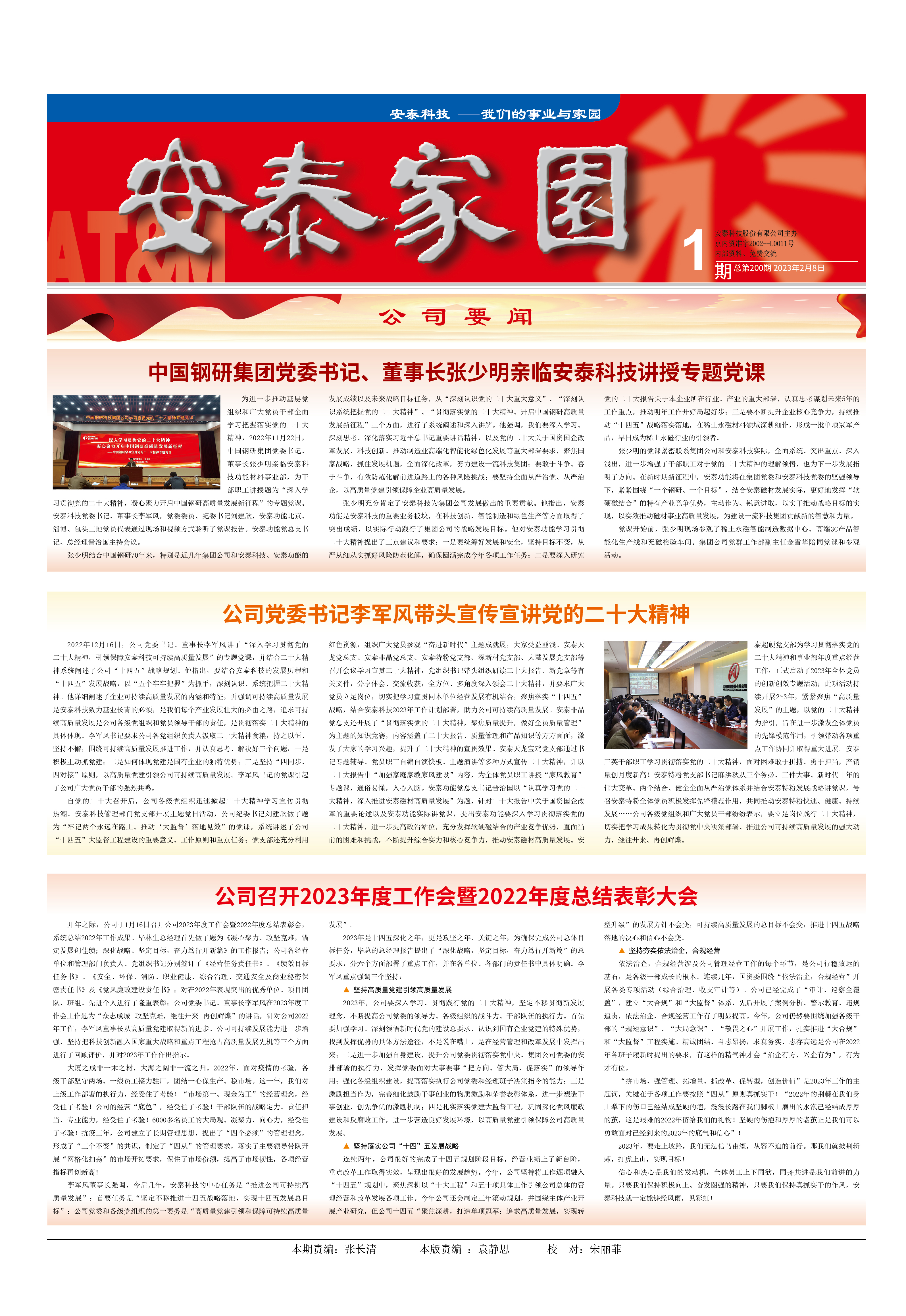 張少明結合中國鋼研70年來,特別是近幾年集團公司和安泰科技、安泰功能的發(fā)展成績以及未來戰(zhàn)略目標任務,從“深刻認識黨的二十大重大意義”、“深刻認識系統(tǒng)把握黨的二十大精神”、“貫徹落實黨的二十大精神、開啟中國鋼研高質量發(fā)展新征程”三個方面,進行了系統(tǒng)闡述和深入講解。他強調,我們要深入學習、深刻思考、深化落實習近平總書記重要講話精神,以及黨的二十大關于國資國企改革發(fā)展、科技創(chuàng)新、推動制造業(yè)高端化智能化綠色化發(fā)展等重大部署要求,聚焦國家戰(zhàn)略,抓住發(fā)展機遇,全面深化改革,努力建設一流科技集團;要敢于斗爭、善于斗爭,有效防范化解前進道路上的各種風險挑戰(zhàn);要堅持全面從嚴治黨、從嚴治企,以高質量黨建引領保障企業(yè)高質量發(fā)展。