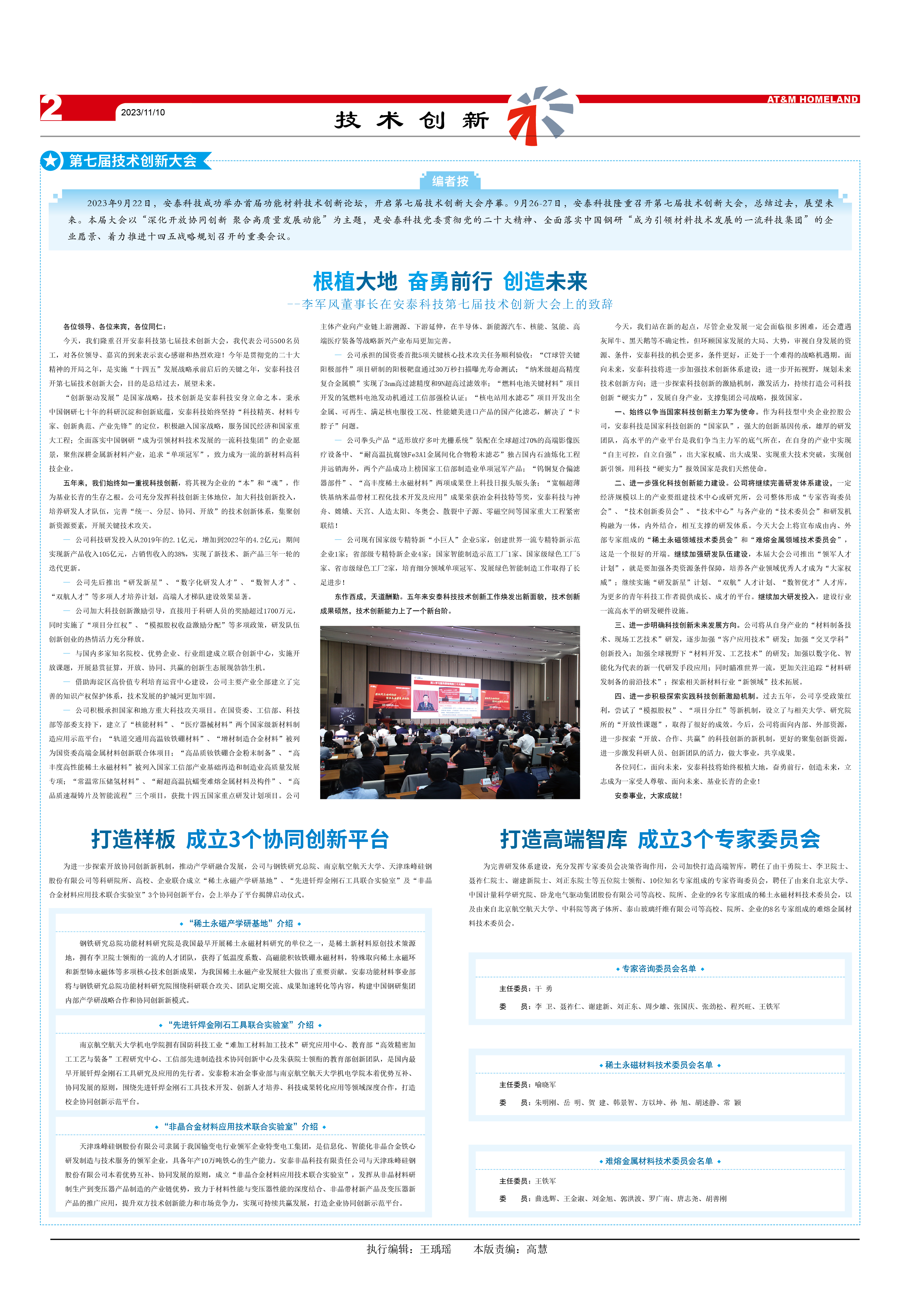 2023922日,安泰科技成功舉辦首屆功能材料技術(shù)創(chuàng)新論壇,開啟第七屆技術(shù)創(chuàng)新大會序幕。9月26-27日,安泰科技隆重召開第七屆技術(shù)創(chuàng)新大會總結(jié)過去,展望未來。本屆大會以“深化開放協(xié)同創(chuàng)新 聚合高質(zhì)量發(fā)展動能”為主題,是安泰科技黨委貫徹黨的二十大精神、全面落實中國鋼研“成為引領(lǐng)材料技術(shù)發(fā)展的一流科技集團(tuán)”的企業(yè)愿景、著力推進(jìn)十四五戰(zhàn)略規(guī)劃召開的重要會議。